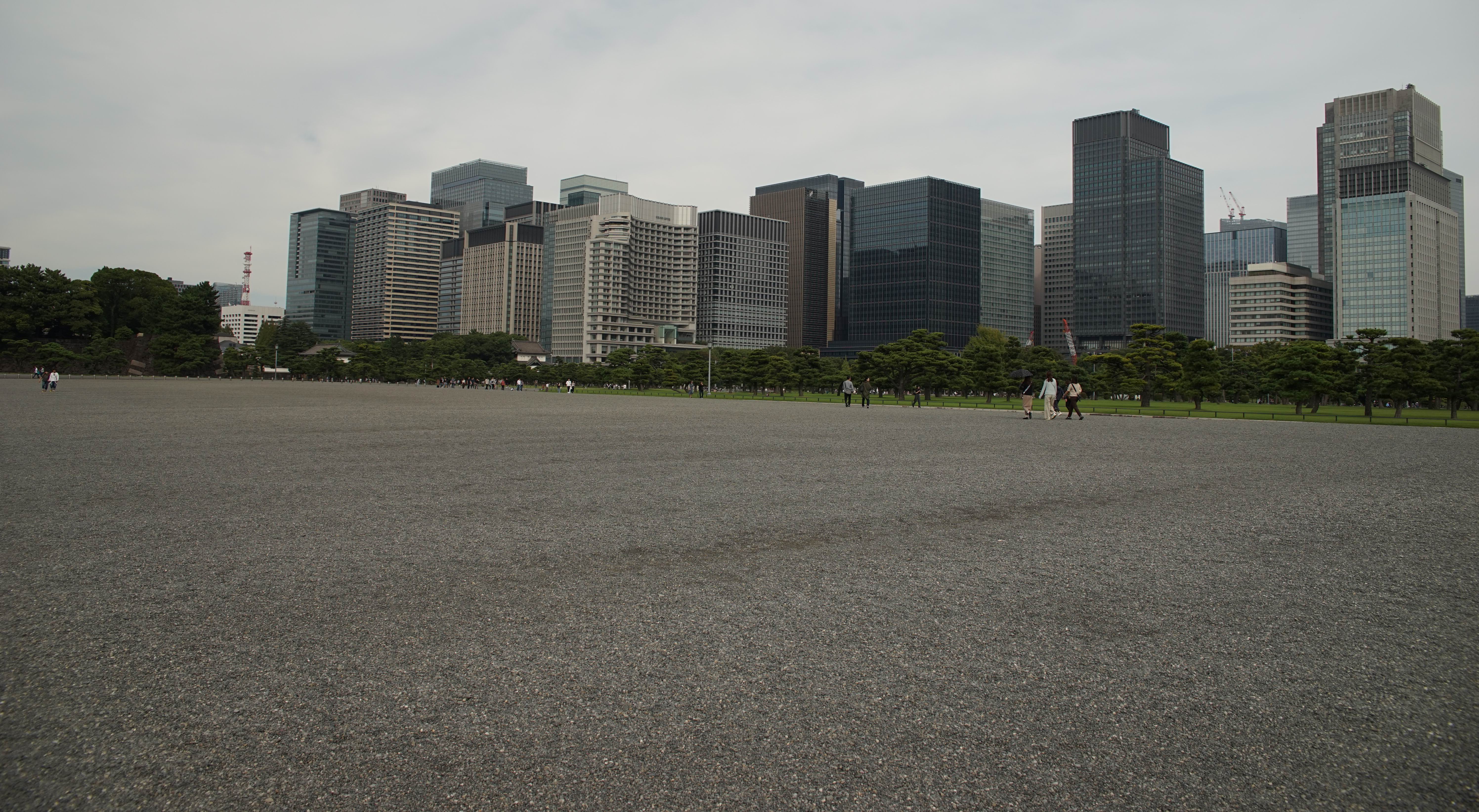 모래자갈 광장을 타지도 않고 밀고 가는데 皇居를 경비하는 사람이 나타나서 빨리 아스팔트 광장으로 나가라고 한다.